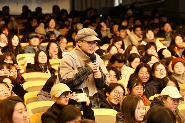 每位老师演讲后设现场提问环节,学生踊跃发言,通过和老师的直接交流互动解决了日常生活学习以及对于艺术追求的疑惑,现场气氛活跃融洽,体现了国美教育理念和师徒传承的和谐氛围。