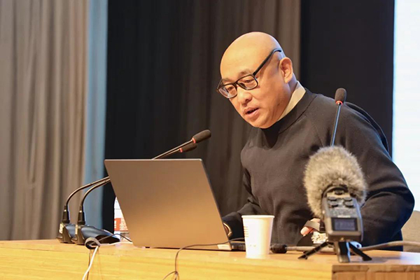 盛天晔老师以斯文在兹为题,简述了国美文化传承与中国传统文化内涵的紧密联系。他提到中国画的意境概念,认为学生要留心观察身边生活,再通过心去表达,同时他强调了勤奋的重要性,学生应该“定魂”,要把握好手头功夫。他提倡学生多读书,以书为媒介要找到个人的立足点,培养起自我判断力和动手修正的能力,找到民族的“魂”。