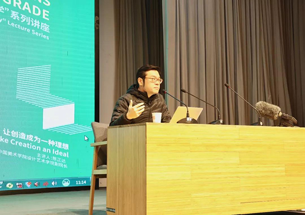陈正达老师将自己的人生分为三个篇章,从大学时代创造风格,创业时代驱动创新,教育时代使命变革三个层面出发,为学生人生道路上怎么去追逐理想树立了一个典型。回溯了国美人对于艺术创造的强烈渴求,探讨了新时代下关于艺术与设计的再思考,讲到了教育的本质在于实践。