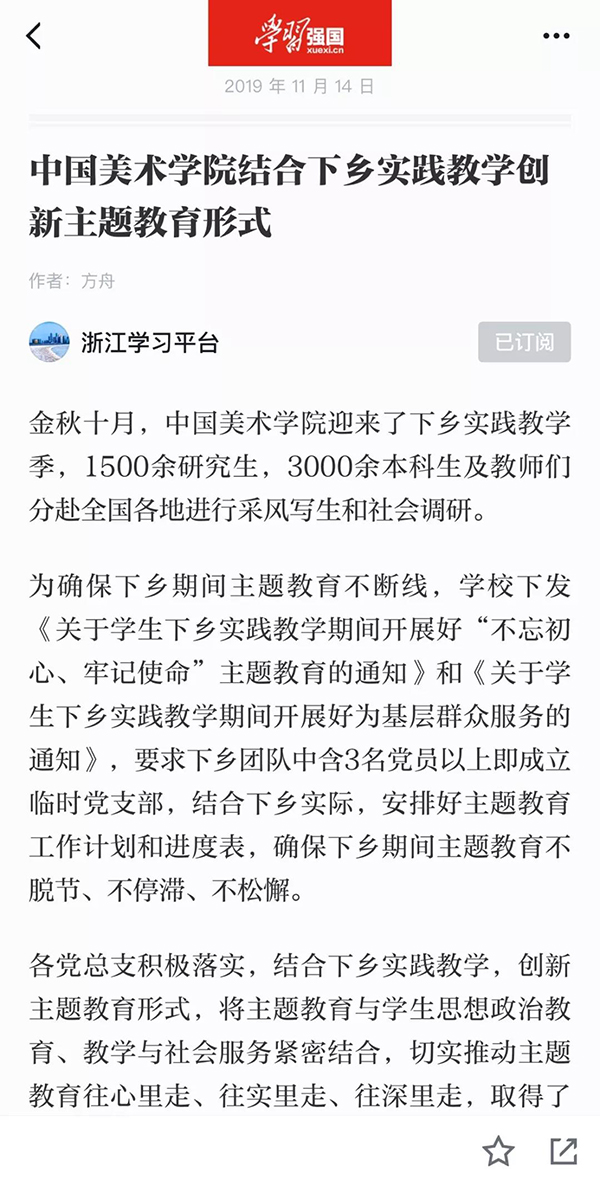 金秋十月,中国美术学院迎来了下乡实践教学季,1500余研究生,3000余本科生及教师们分赴全国各地进行采风写生和社会调研。