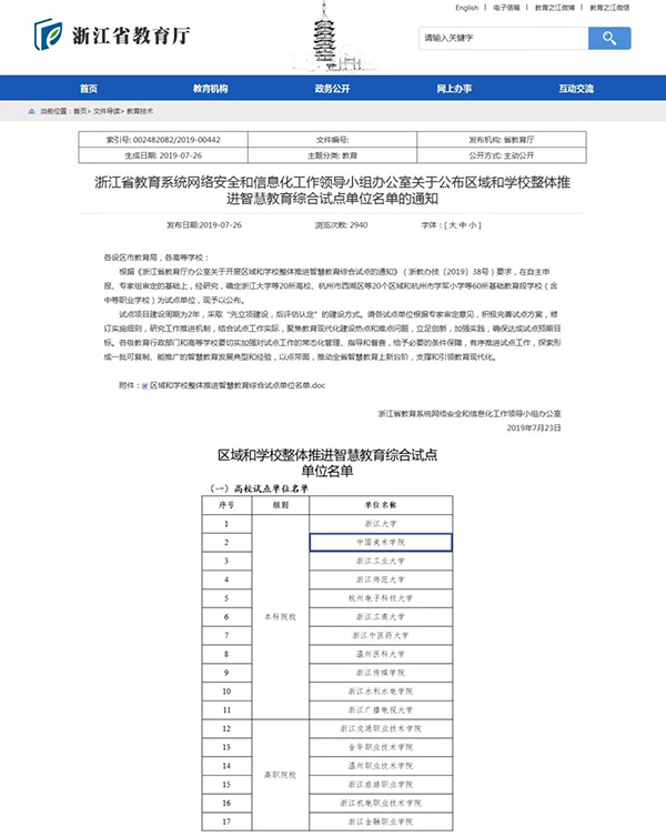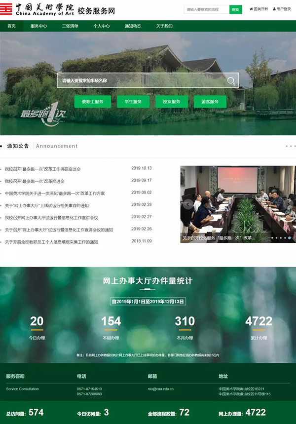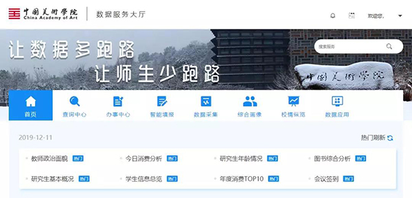 中国美术学院网络安全与信息化办公室以开展“不忘初心、牢记使命”主题教育为契机,以推进“最多跑一次”校务服务改革为抓手,以提升服务师生的满意度和获得感为导向,坚持顶层统筹,整合数据融通,深化技术应用,聚焦学校事业发展,着眼解决实际问题,推进“数字国美”建设“往深里走、往心里走、往实里走”,确保主题教育取得实际成效,今年学校入选了浙江省整体推进智慧教育综合试点高校。