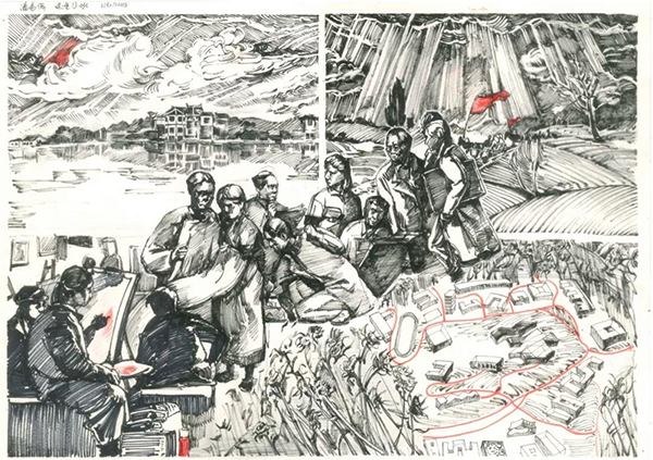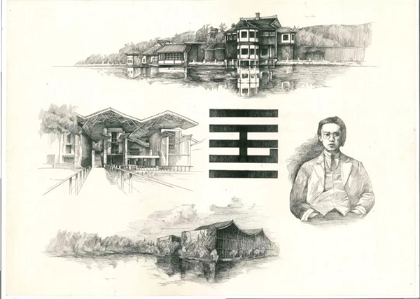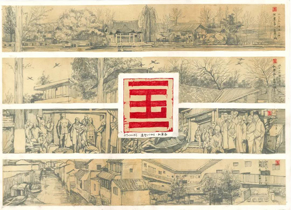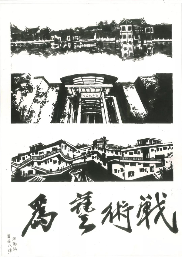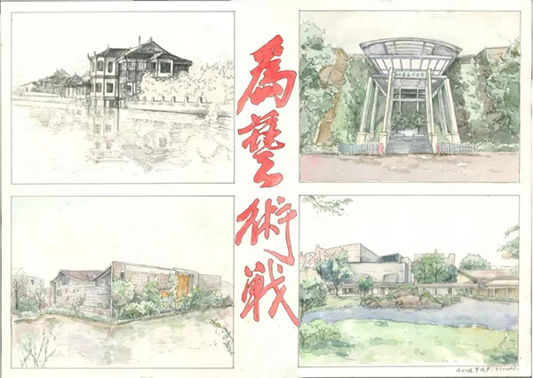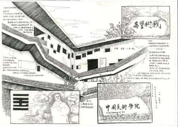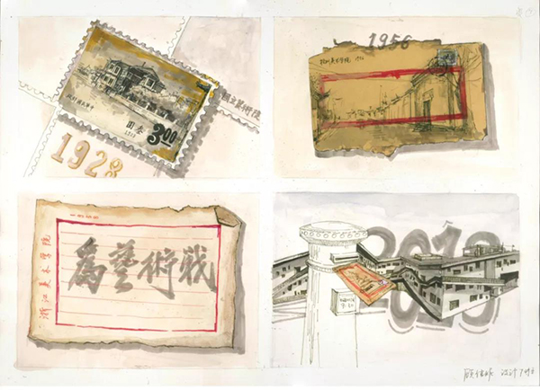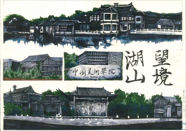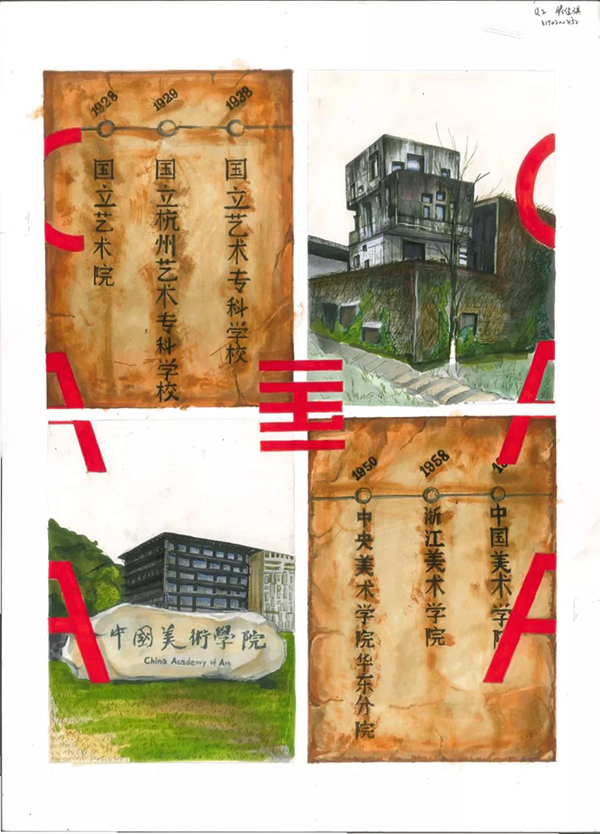 第一幅小卷作品:以中国美院的全貌风景介绍作为总括,而引出以下作品。