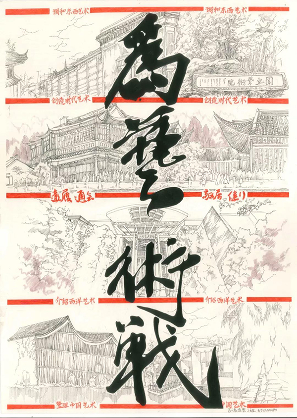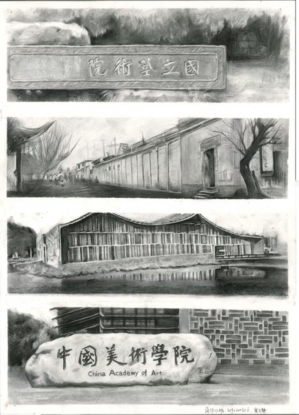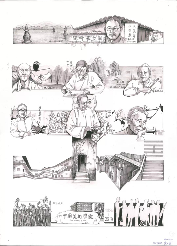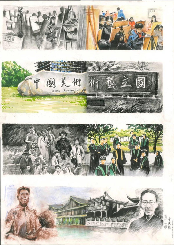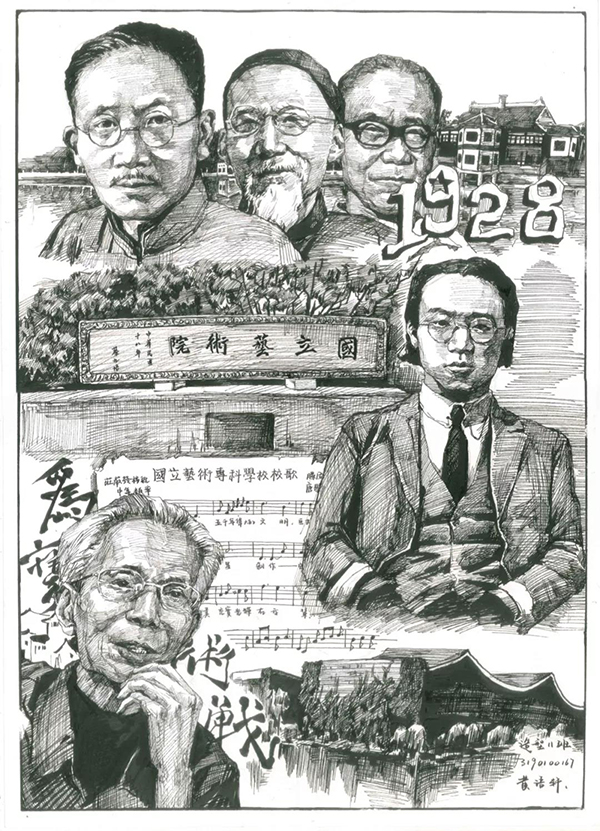 作为国美的一名学生,慕中国美术学院之名而来,首先即因它的累累校史,校史不止各个时代中这座学府所经历的波折,锻造的成果,更为一代又一代美院人的艺术风骨在历史长河中所立下的一座又一座丰碑——学术、巨著、名作、精神……或讶于林风眠先生画卷袅娜仕女;潘天寿先生坚守的那份中华艺术之高尚气节;或冠中先生贯通于中外古今的画面荡涤;或黄宾虹先生一笔揽尽的中国大好河山……踱步在校园,却如同漫步在历史冲刷过的步道,先贤面貌还能时时映现眼前,倘若任意叫住一名同学,关于校史,他总能从感叹到自豪向你说道上一段他自己所景仰的故事,这便是美院人。这种默契来源于美院艺术精神的传承,那是一支青春的战歌,孰不知南门所立“为艺术战”的巨石标语,早已是古往今来每个美院人的暗号。而美院的校园也因时代迁移史早揽尽了杭城美景。可曾想过我们也是历史?我们跨过时代,在无数个黑夜一次又一次颠覆自我的创作观,用新型科学技术关联时代艺术,用触控笔将平面切到空间。又或许有时自我个体就成为了这其中的一件作品。美院学子,薪火相传,灵魂深处,总有代代师生先贤流转顺接的精神共鸣在不时召唤我们,以用美学去引导开辟一个新时代属于我们的新道路。