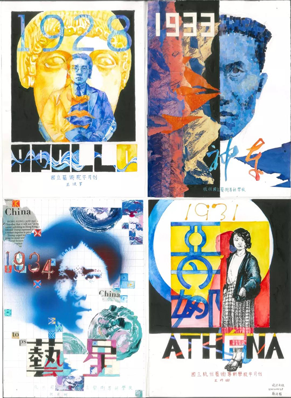 最后:我将大写“国”字放在中间以便收官四幅小画合而为一幅大画做到画面统一的同时又不忘主题,中国美术学院。