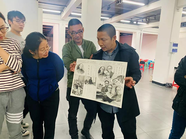 第三幅小卷作品:摘录学校师生雕塑作品,介绍中国美院的优品教育与向上学习的积极态度。
