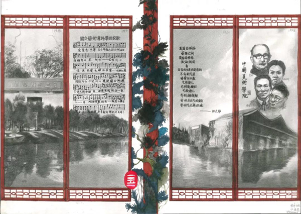 作为刚入校不久的大一新生,这是我第一次在校获奖。在激动之余也意识到此次获奖对自己的意义。通过这次校史创作,我更加了解了学校发展历程,更加深了自己对母校的归属感。同时有幸作为新时代的青年,作为新一批国美人,便更愿意担负起一种责任感和历史使命感,遵循“行健、居敬、会通、履远”校训,积极塑造才情学养人品志向的新国美人。感谢老师们对我的认可,我相信自己会像一粒种子,在美院的沃土中展现出无限的生机。