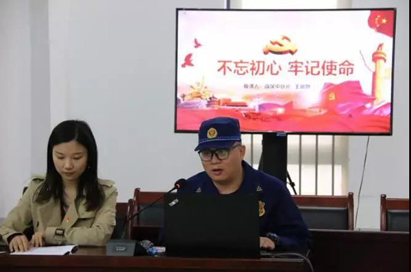 接着,大家结合本次活动开展了座谈会。王队长以“不忘初心,牢记使命”为主题,向师生们介绍了中国消防救援队的发展历史以及近年来的英雄事迹。这一串串数字、一个个名字,深深地震撼了在场的师生们。这堂深动的党课让大家更加深刻地体会到了这份职业所肩负的责任与使命。正如习近平总书记说:伟大出自平凡,英雄来自人民,把每一项平凡工作做好就是不平凡。