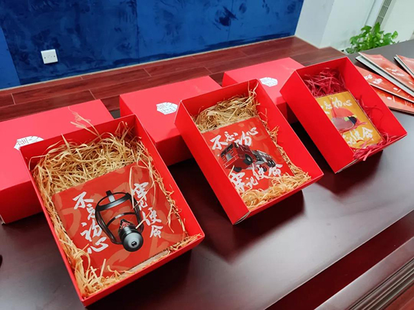 包航宇同学作为学生党员代表也分享了这次活动从构思设计到方案策划,再到活动筹备的心路历程。现场的体验 活动更是让他感受到了消防员的艰辛。作为一名预备党员,他更加体会到了自己身上的使命与担当。最后,由学院领导向消防员们赠送了学生党员亲手设计的文创纪念品,并且合影留念。