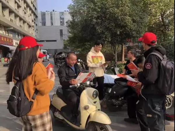 “您好,请问您知道119全国消防日吗”?“小朋友,姐姐来跟你讲讲消防安全知识。”中国美术学院设计艺术学院的学生党员志愿者胸佩党徽,头戴小红帽,肩戴志愿徽章,一边向群众们主动发放亲手设计的消防安全知识手册,一边为群众讲解火灾预防的注意事项,成为了转塘街道一道亮丽的风景线。