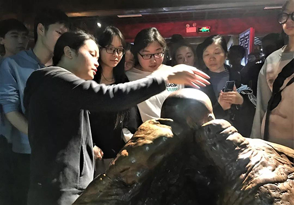 马克思主义学院范慧老师结合当地的思想文化给大家做一次交流介绍,衢州是儒家思想文化的重镇,开化原以伐木作为主要经济来源,后因山洪而开始谋求经济转型,现在开化则是借助根博园走入生态旅游之路。这些转变看似毫无关联,但其实是符合我们的传统文化表现。借助根雕艺术的发展,希望开化能发展的更好。