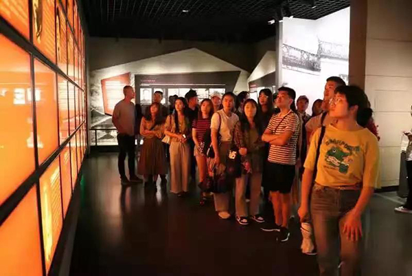 我们来到了距中国美术学院象山校区二十公里外富阳区的抗日战争胜利浙江受降纪念馆,据了解,在抗日战争时期,日本侵略军占据杭州,宋殿村周围碉堡林立,战壕纵横。数以千计的人被日本侵略军杀害,并抛尸于村南千人坑。富阳县长新乡宋殿村,便被指定为接受侵犯浙江地区日军投降的洽降地点。为了纪念这一有历史性事件,长新乡改名为受降乡,受降因此得名,并沿用至今,后受降乡改制受降镇。到达纪念馆后,在讲解员的带领下,大家一同,深入了解这段历史,并致以最崇高的敬意!
