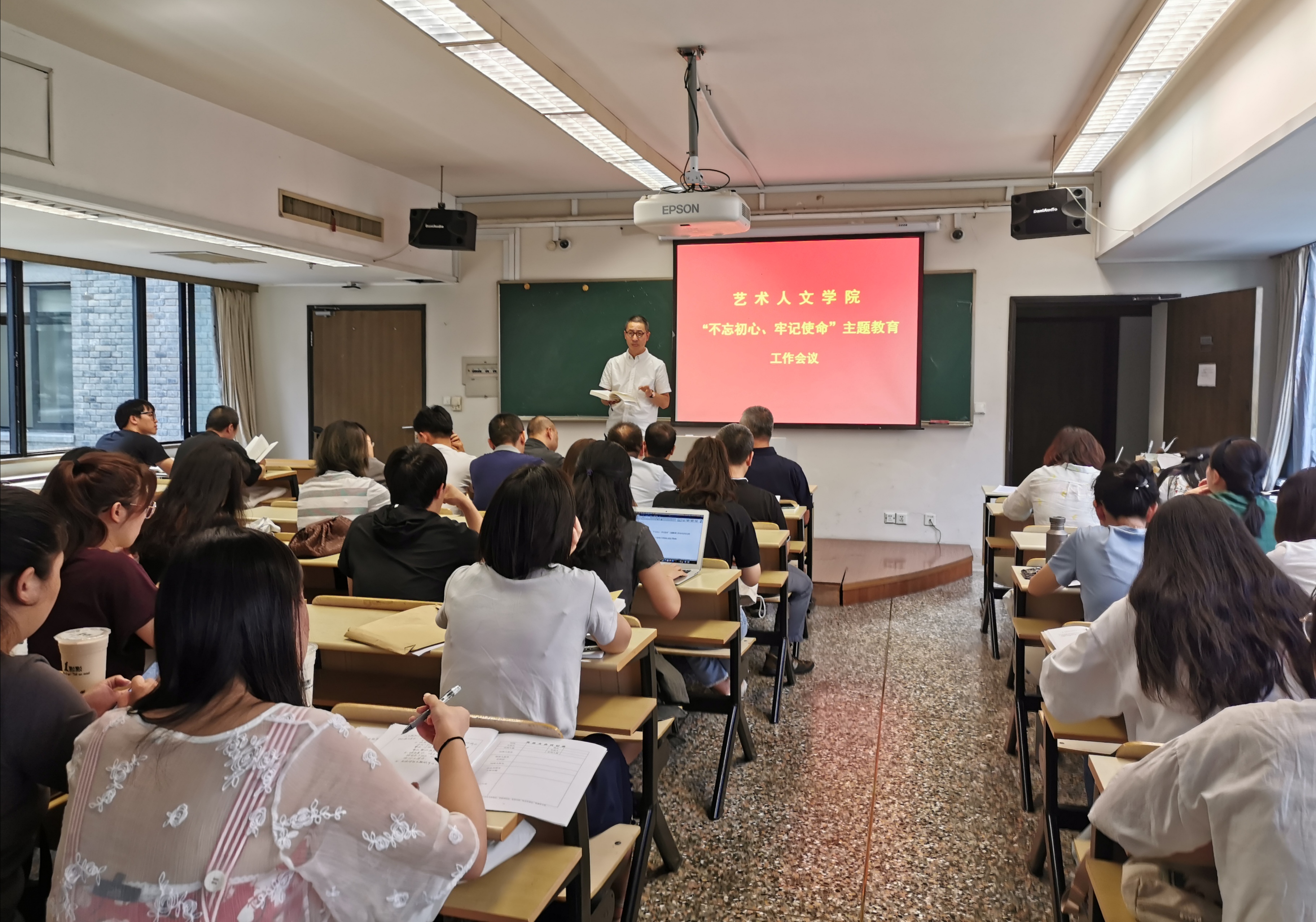 9月17日下午,艺术人文学院党总支召开“不忘初心、牢记使命”主题教育工作会议,深入学习贯彻学校党委“不忘初心、牢记使命”主题教育工作会议精神,动员部署学院主题教育工作。艺术人文学院中层干部和全体师生党员参加会议,艺术人文学院院长、党总支书记杨振宇做动员部署。